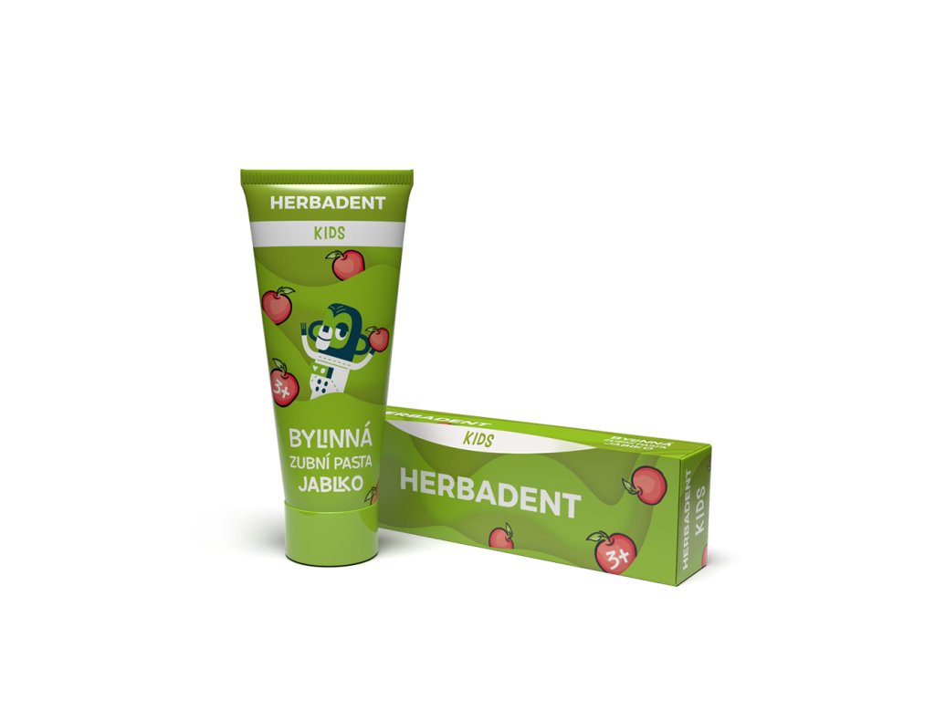 HERBADENT KIDS Bylinná zubní pasta pro děti od tří let s novou příchutí Jablko.